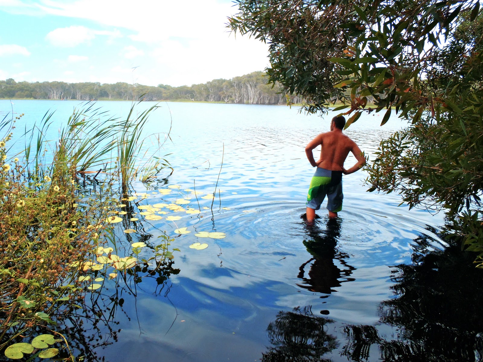 The deep rust-coloured water is a result of tannins from the therapeutic oils effused from surrounding tea trees. Swimming in this natural tea tree lake seems a bit odd at first, but seeing the crowds of people along its shores makes it seem okay to climb into its dark brown water. Not being able to see my feet while standing knee-deep in the water was a bit unnerving for me, but as I got past the overhanging branches, the leaf-covered bottom turned to sand and the water was so warm- it was begging to be floated in. If I had a tube, I would have floated in those peaceful waters all day.